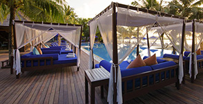 Расположенные на сваях над бирюзовыми водами лагуны частные джакузи и солнечная терраса предлагают роскошный расслабленный отдых. Непревзойденный вид на закат.